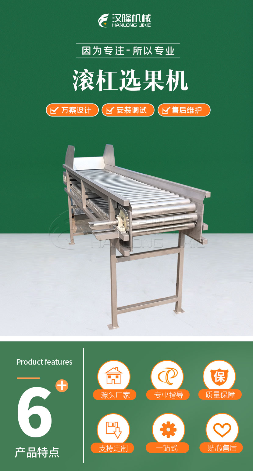 1、该选果机非常适合各个半圆、椭半圆果疏的划分,复制带出果,出果滑道落差小,划分过程中 不用对果诱发二级伤害力。