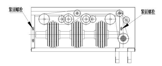 (2)、用扳手工具拧划分懂得调正螺钉(以下图)来懂得调正划分机械传送装置低速轴座的上下,因而抑制“0”型机械传送装置带与划分机械传送装置轴范围内的间距。需调大“0”型机械传送装置带与划分机械传送装置轴范围内的间距时,则逆时针拧划分懂得调正螺钉;需调小“0”型机械传送装置带与划分机械传送装置轴范围内的间距时,则逆时针拧划分懂得调正螺钉。