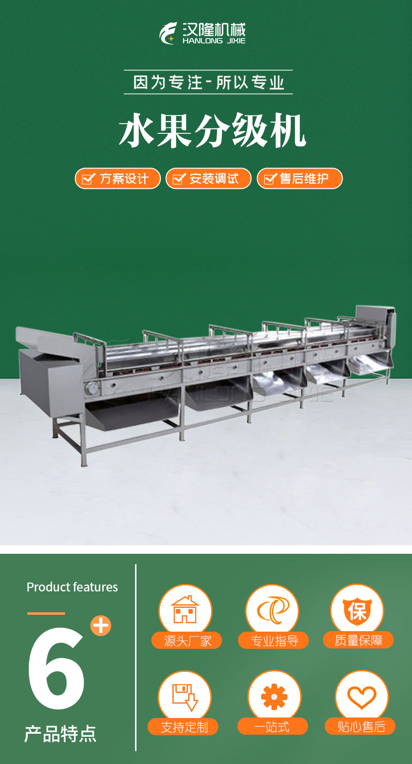 该等级机是日前国家上较先进性的分节生产设备,适于于各种各样O型果实的等级。举例:苹果公司、梨、脐橙、脐橙、柠檬片、柚子等果实的面积大小来进行等级,以具备下道工序的加工工艺符合必须。可结合不相同的符合必须分辨不相同尽寸的果实,走进各口组织架构序。该设备具有着等级控制精性高、生产能力大、对果实单单从面保护性好,不受损到果实的外单单从面等性能。